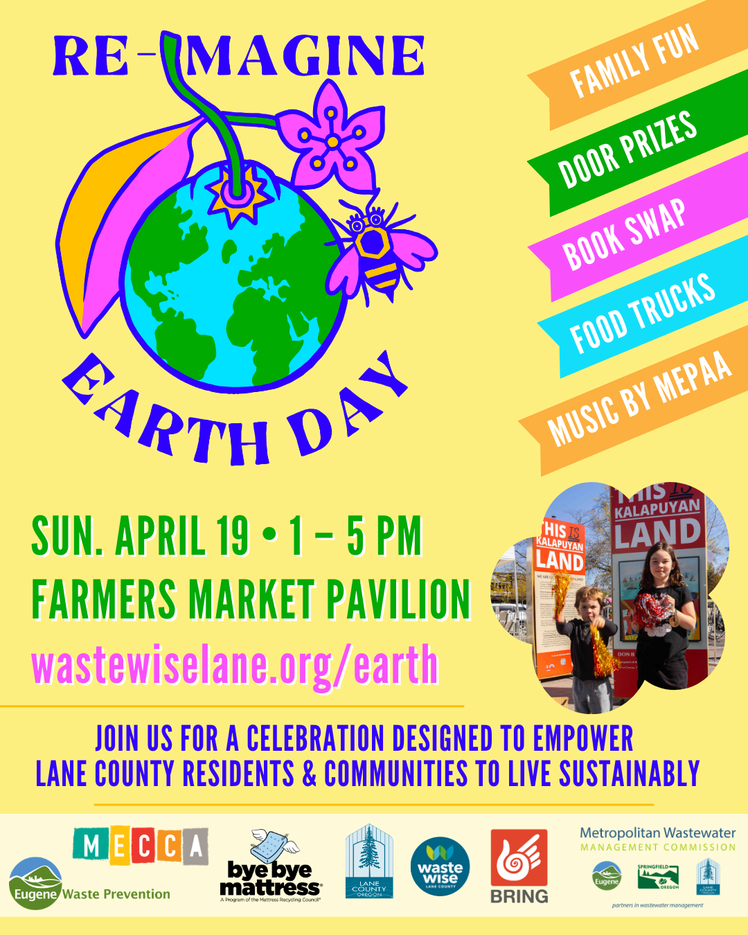 We are joining nonprofit partners for Eugene’s Re-Imagine Earth Day! Join us for a day to engage, learn, and take meaningful steps towards a healthier planet. Re-Imagine Earth Day is hosted by Waste Wise Lane County, BRING Recycling, MECCA, and City of Eugene Waste Management.